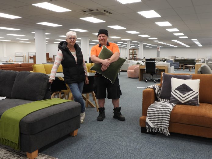 Big Save Greymouth team members, senior saleswoman Issy Crooks, left, and sales and dispatch assistant Aarron Frew were today excited to be part of the new furniture store, which opens this Friday.